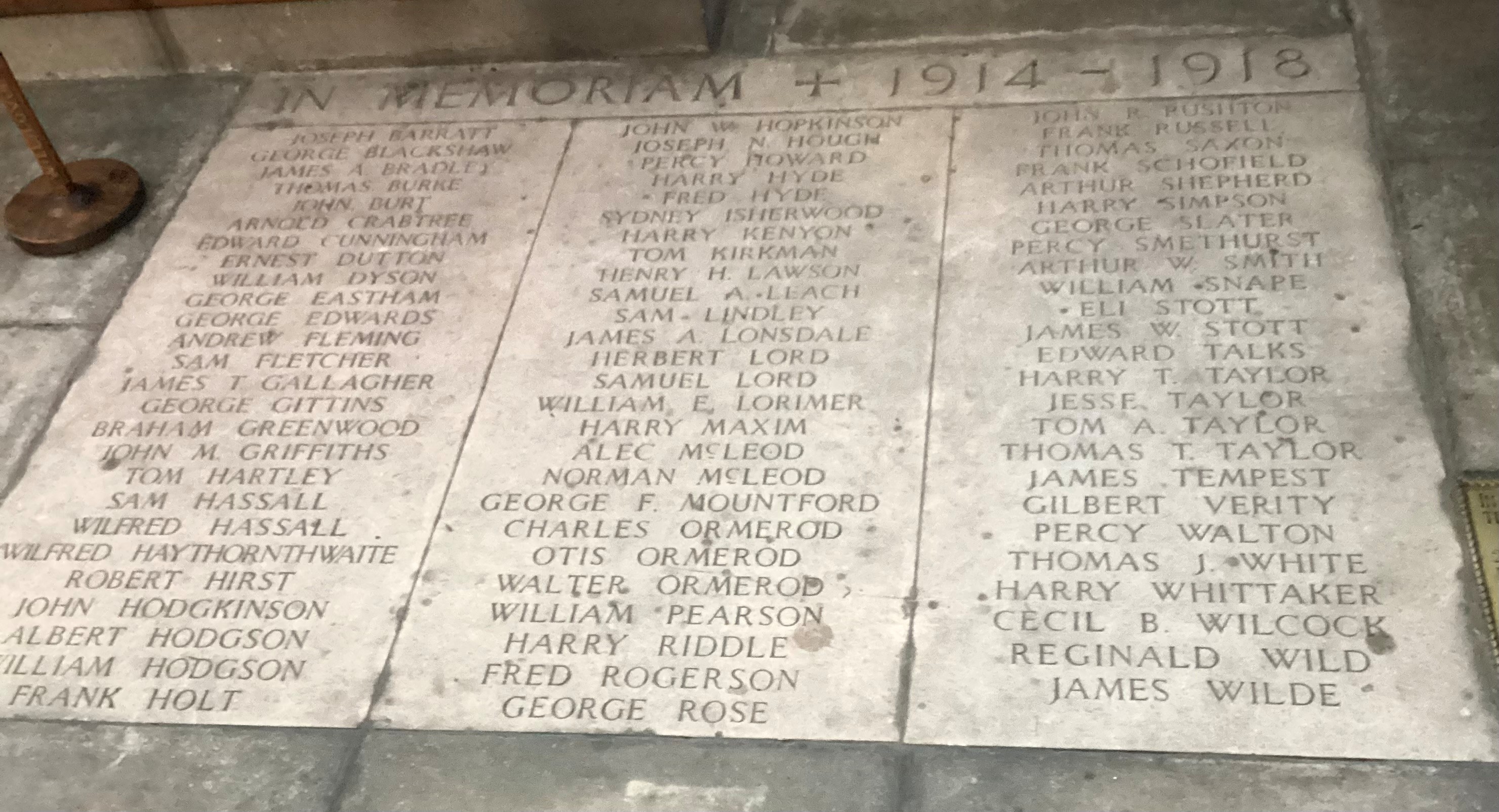 The names of the members of the Parish who lost their lives during both wars are recorded in the pavement of the Sanctuary.