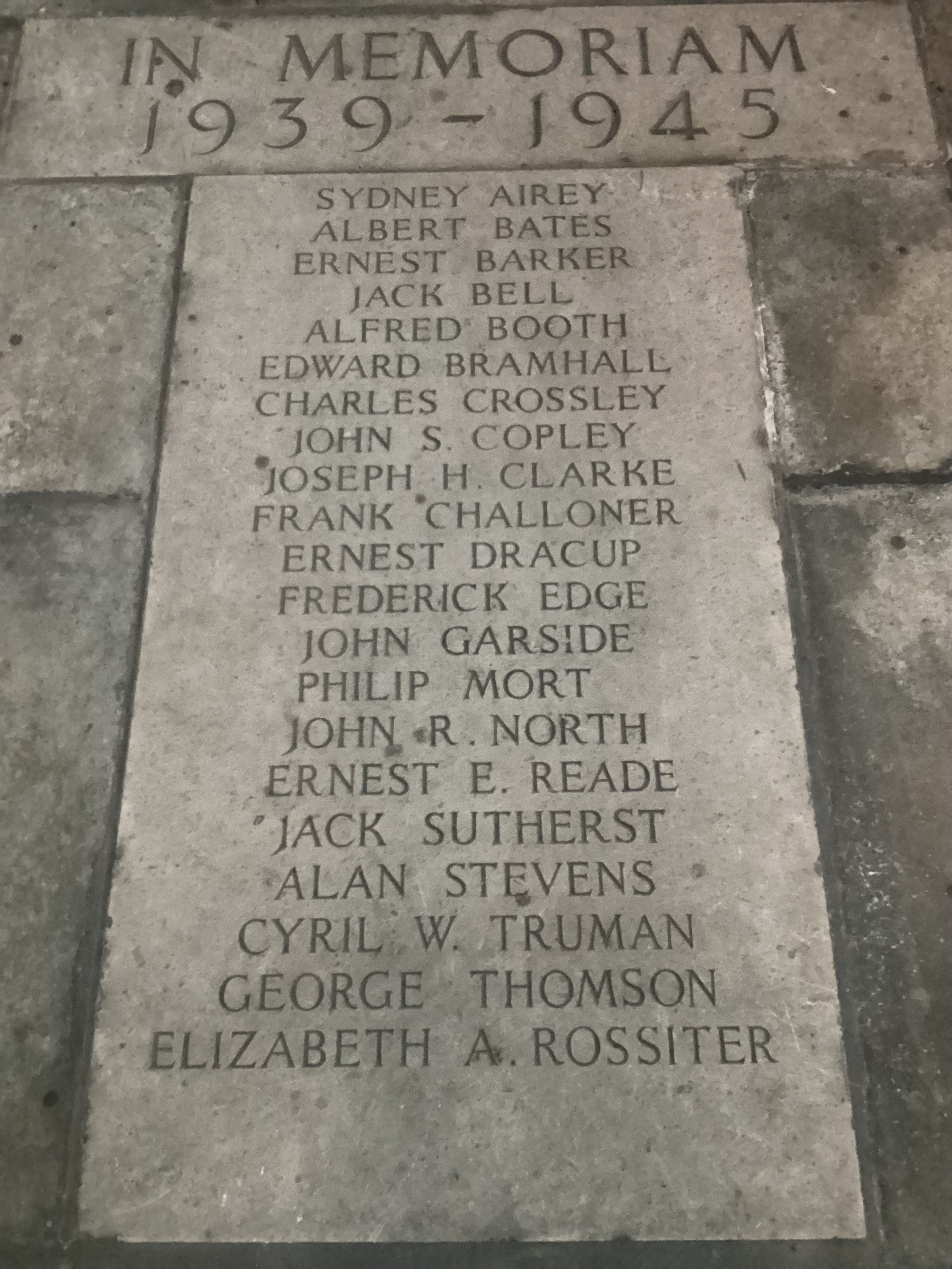 The names of the members of the Parish who lost their lives during both wars are recorded in the pavement of the Sanctuary.
