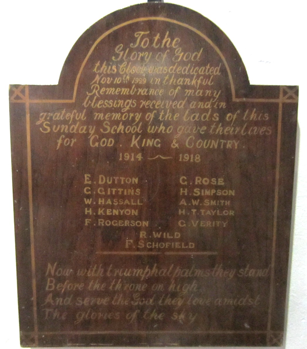 The East Window is a permanent memorial to those of the Parish who lost their lives in the two World Wars and was dedicated by the Bishop of Manchester, Dr Guy Warman, at a special service on Saturday 11th May 1946.